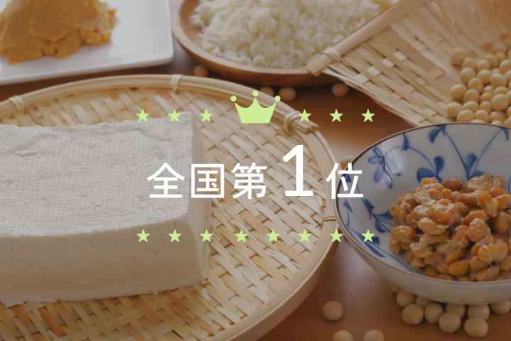 豆腐、納豆、油揚げ、湯葉、きな粉などで1位。おからや凍み豆腐など「その他の大豆製品」も第4位。無類の豆好き県です。